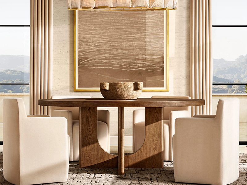 Bàn ăn gỗ cao câp BA24 là một cách diễn giải đương đại về phong cách Streamline Moderne của Pháp những năm 1940, hay Phong cách paquebot.
