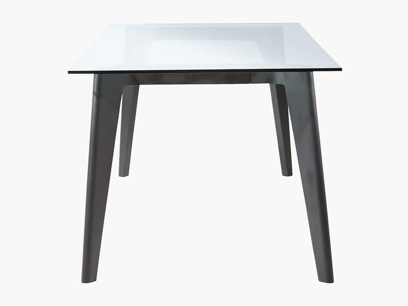 Bàn ăn chân gỗ mặt kính được cường lực dày 10mm. Chân bàn và mặt kính đều được bo góc an toàn khi sử dụng. Bàn ăn chân gỗ sơn mờ hiện đại bảo hành 2 năm.