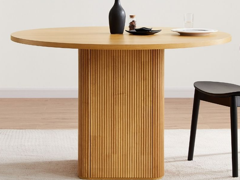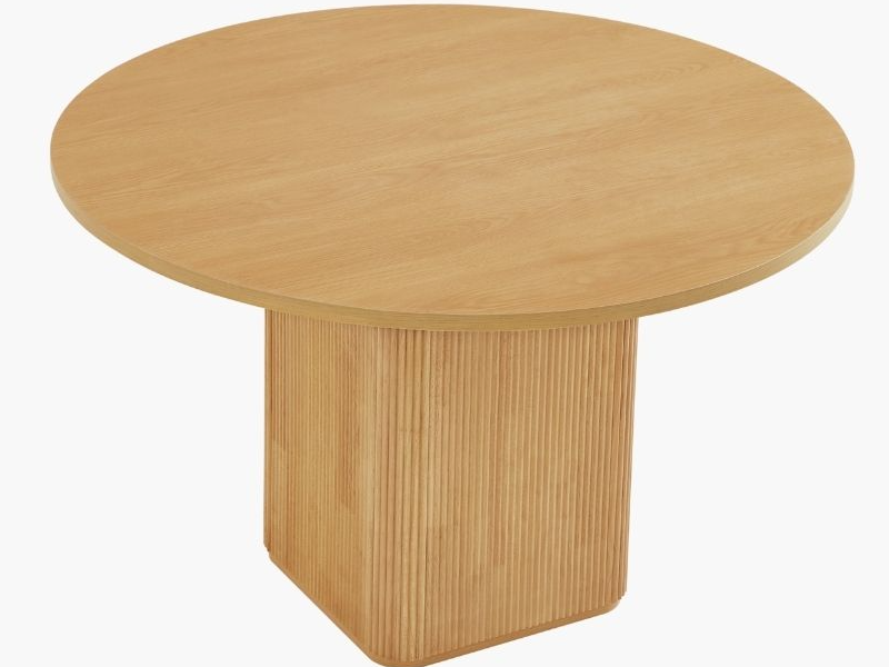 Bàn ăn tròn chân nan gỗ thịt với thiết kế dạng chân trụ vuông bo góc độc đáo. Với chân trụ vuông bo góc tạo cảm giác mãnh mẽ hơn chân trụ tròn. Màu sắc tùy chọn.