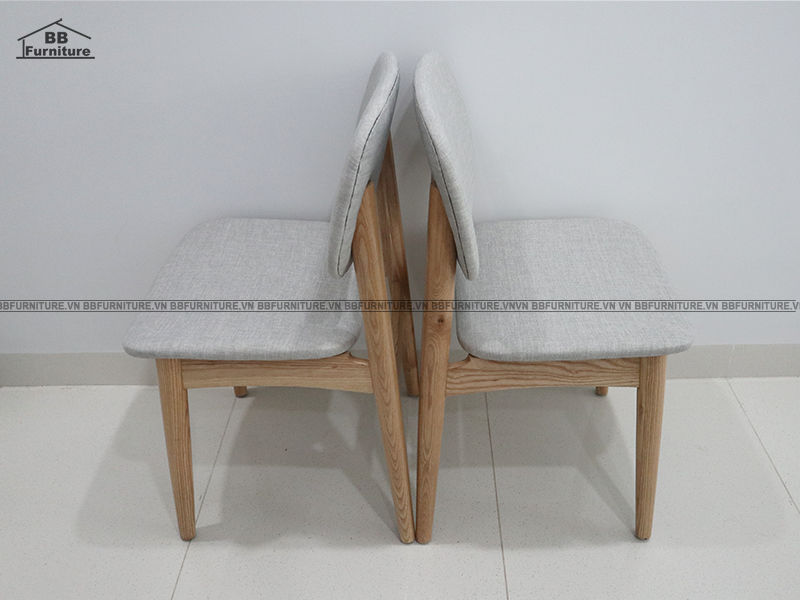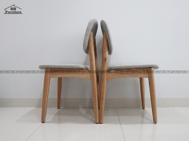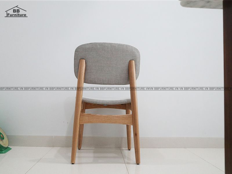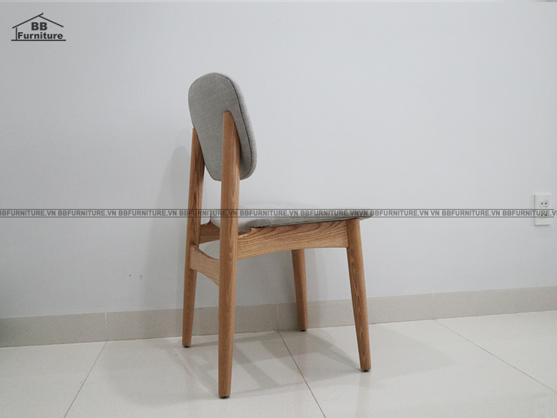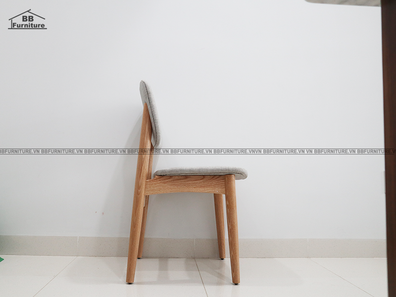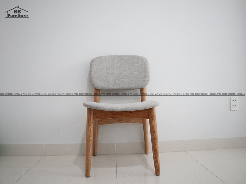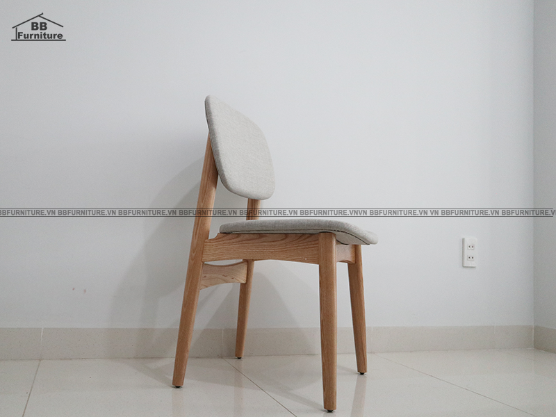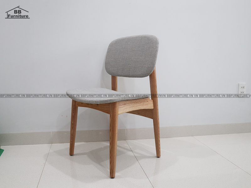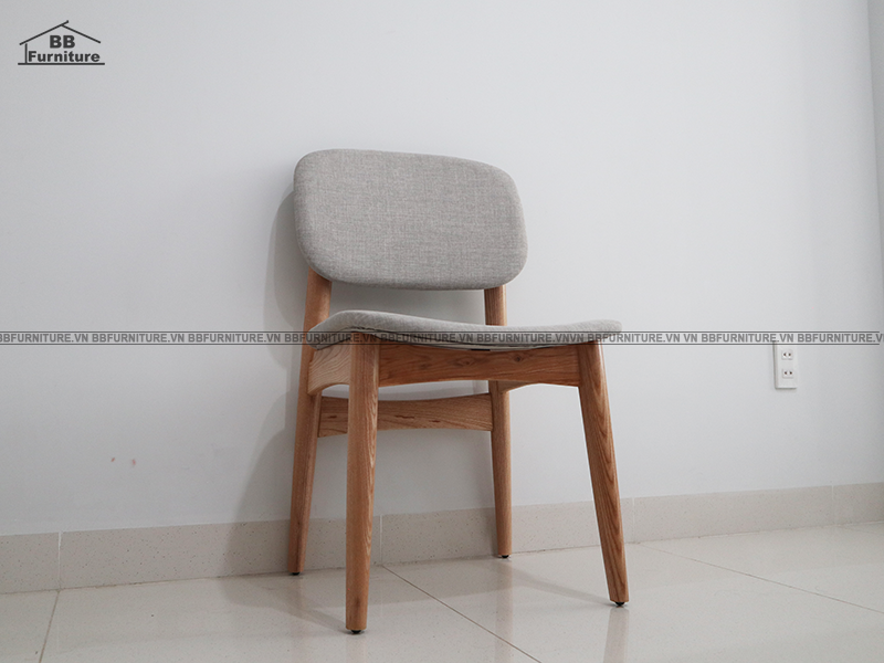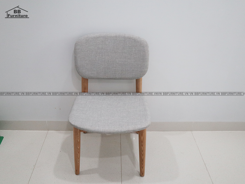 Ghế ăn bọc niệm hiện đại, lựng tựa mặt ngồi cong bọc vải cỏ may. Ghế ăn bọc nệm hiện đại với vẻ bền ngoài chân gỗ sồi tiện tròn điêu khắc độc đáo. Lưng tựa và mặt ngồi ghế bo cong bọc nệm vải đa màu sắc tùy chọn.