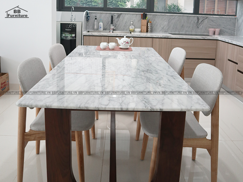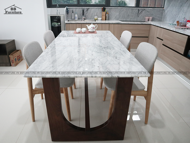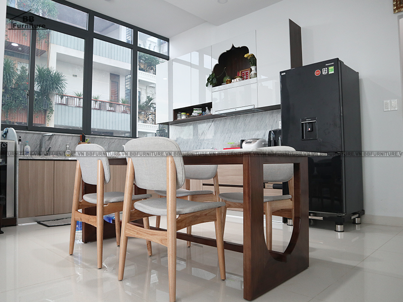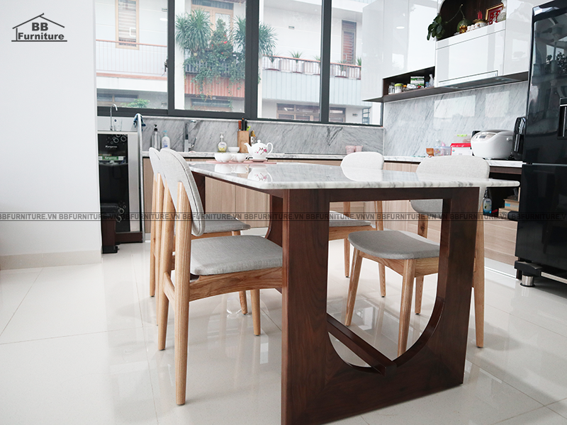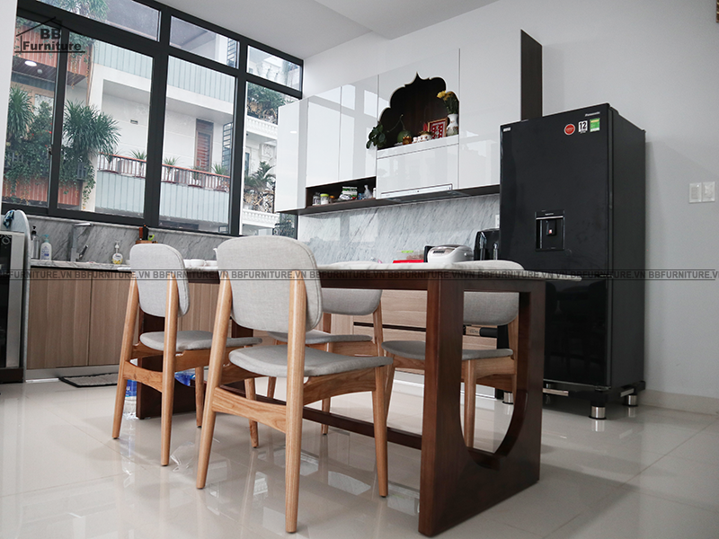 Ghế ăn bọc niệm hiện đại, lựng tựa mặt ngồi cong bọc vải cỏ may