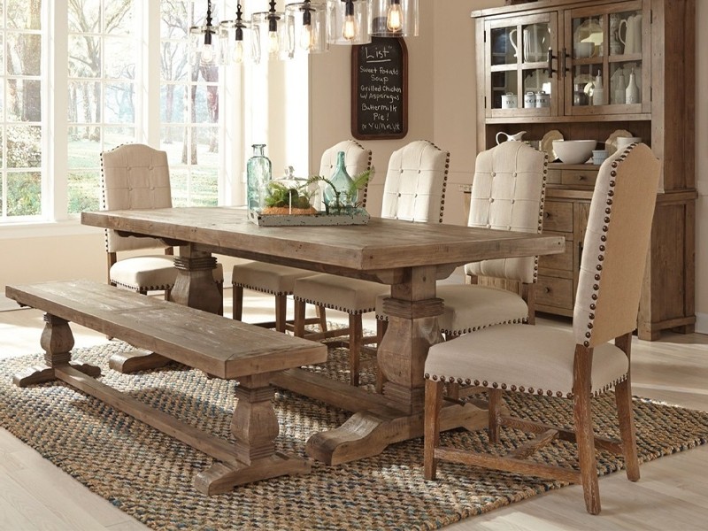 Ghế băng dài cổ điển với gỗ tự nhiên nguyên khối thô mộc.
