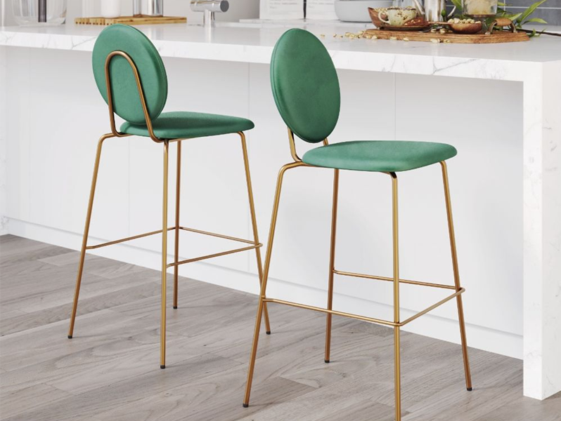 Ghế quầy bar 18 với sự tinh tế hòa quyện liền mạch với tính thực tế. Chiếc ghế tuyệt đẹp này có phần ghế nhung xa hoa, kết hợp trang nhã với khung thép mạ màu vàng chắc chắn. Được chế tác để linh hoạt, có thể xếp chồng lên nhau để tiết kiệm không gian lư