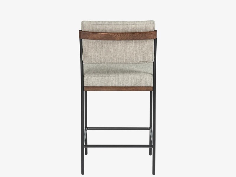 Ghế quầy bar có lưng tựa bọc nệm êm ái, chân ghế được sử dụng vật liệu sắt sơn tĩnh điện chống ăn mòn. Nệm ngồi ghế bar bọc vải, da với nhiều màu sắc lựa chọn.