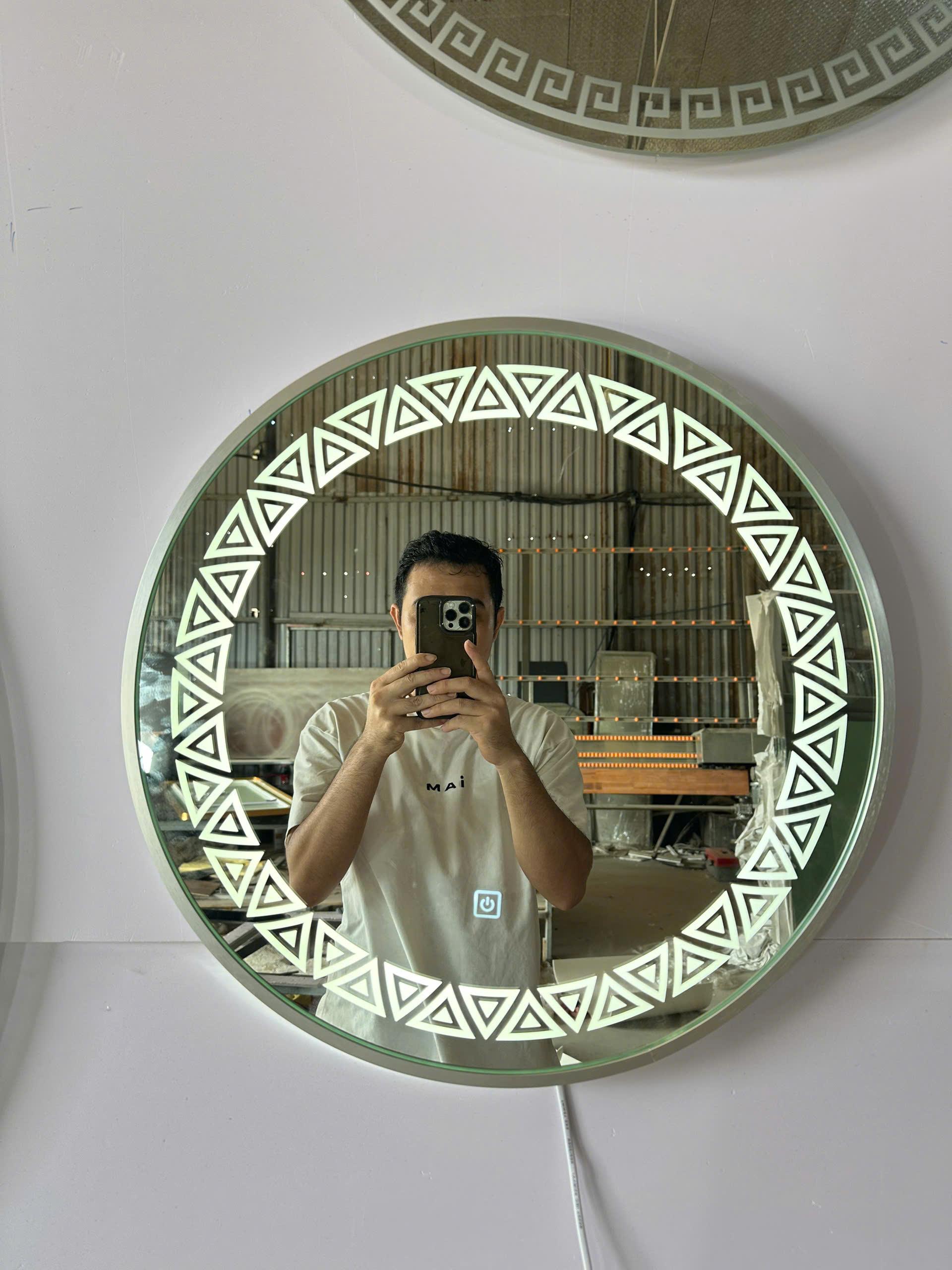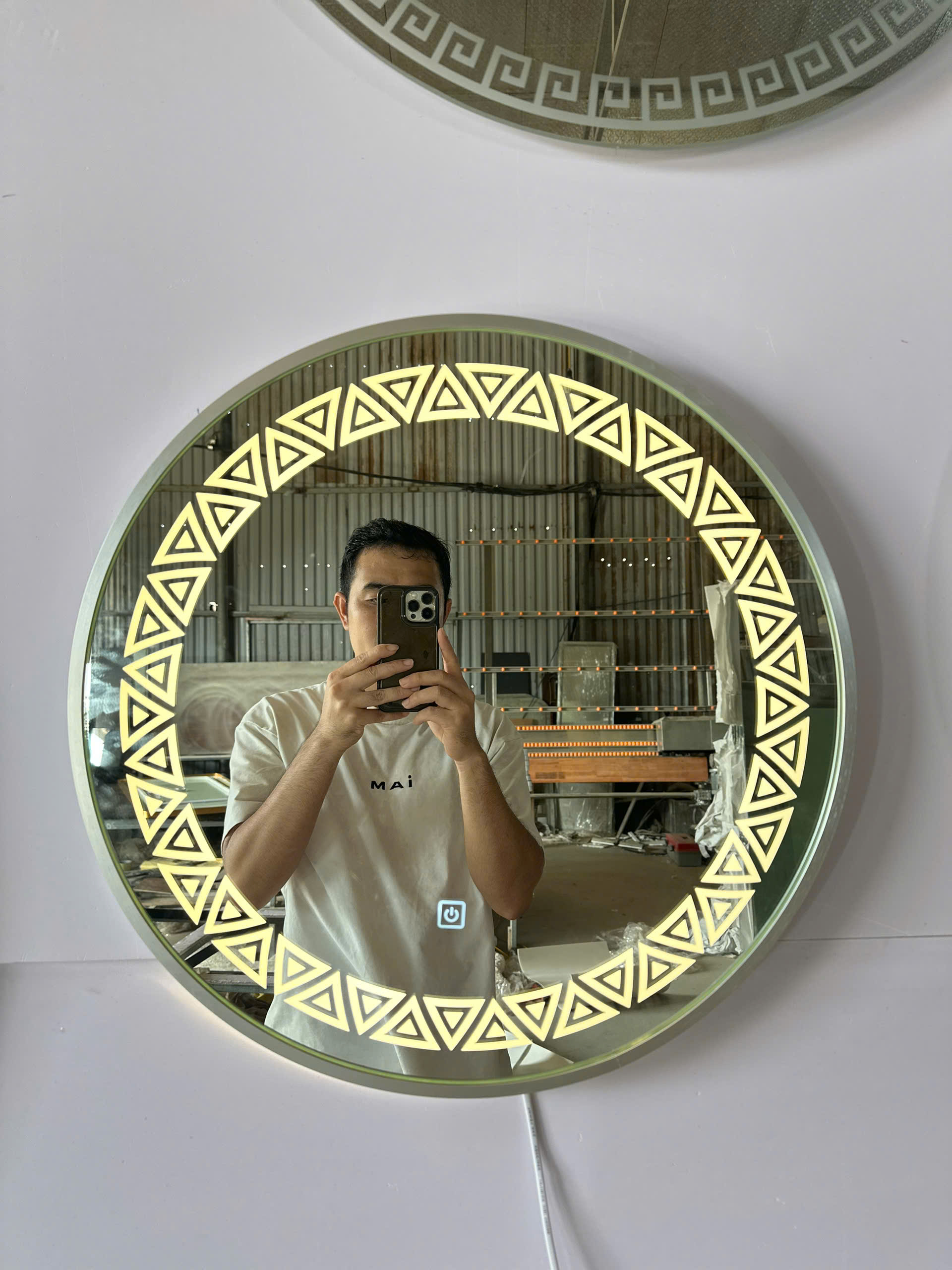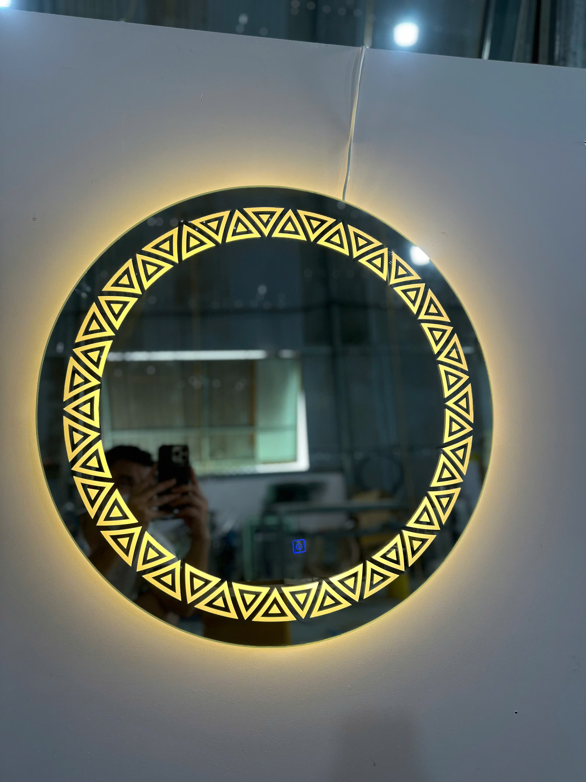 Hình ảnh mẫu gương nhà tắm tròn đèn led viền tam giác