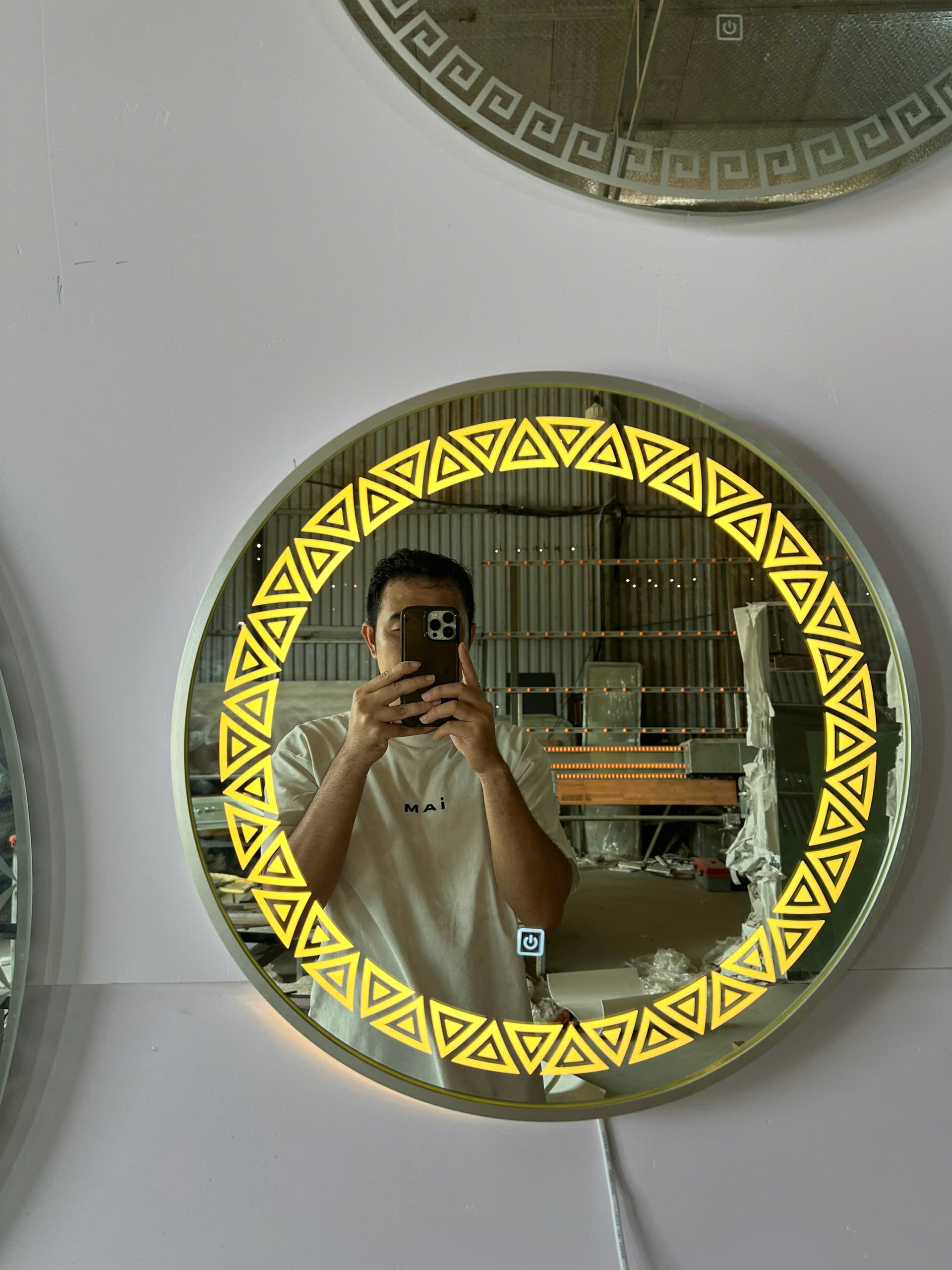 - Gương shop thời trang tròn đèn led tam giác