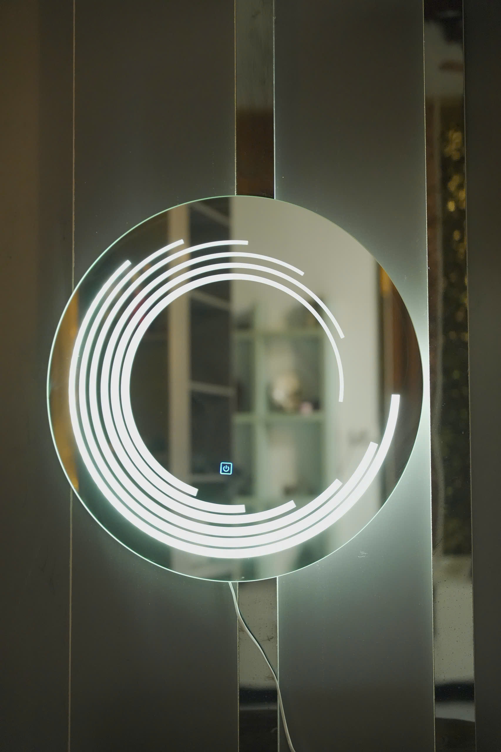- Gương phòng tắm hình tròn có đèn led dạng nhiều vòng cung đặt cạnh nhau đẹp mắt. Sản phẩm thích hợp cho không gian phòng tắm gia đình, homestay, khách sạn, resort,…